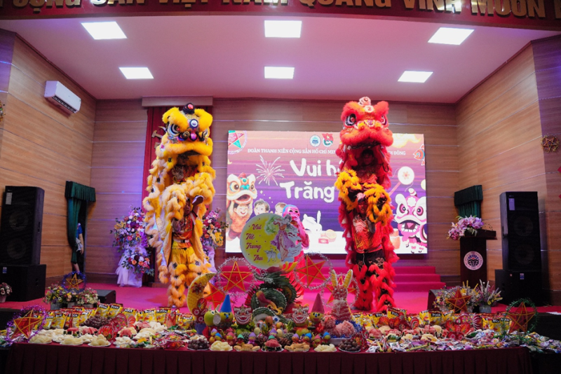 Điểm nhấn của đêm hội là phần “Phá cỗ trăng rằm – chia ngọt yêu thương”, nơi sinh viên cùng các em nhỏ quây quần bên mâm ngũ quả, cùng nhau thắp sáng những ngọn nến, trao gửi lời chúc tốt đẹp và tận hưởng hương vị đoàn viên.